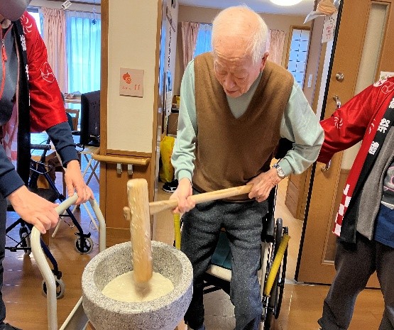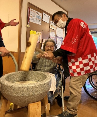 【もちつき】 2025.12.27 みやぎ台南生苑 年末恒例の餅つきを行いました。各ユニットを回り、「ヨイショ!ヨイショ!」の掛け声で皆さんお餅をつきました。皆様の掛け声や笑顔が溢れて大盛り上がりでした♪おやつでは、おしるこが提供され、こちらも喜んでいただけました。 Tweet Share Hatena Pocket RSS feedly Pin it 投稿者: laika みやぎ台南生苑 みやぎ台南生苑, もちつき, 南生会 【郷土料理の日:滋賀県】前の記事 【新年会】次の記事
