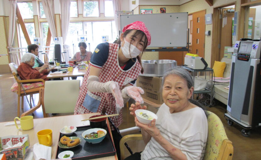 南生苑で作ったさつま芋と、千葉県産のコシヒカリを提供させていただきました。